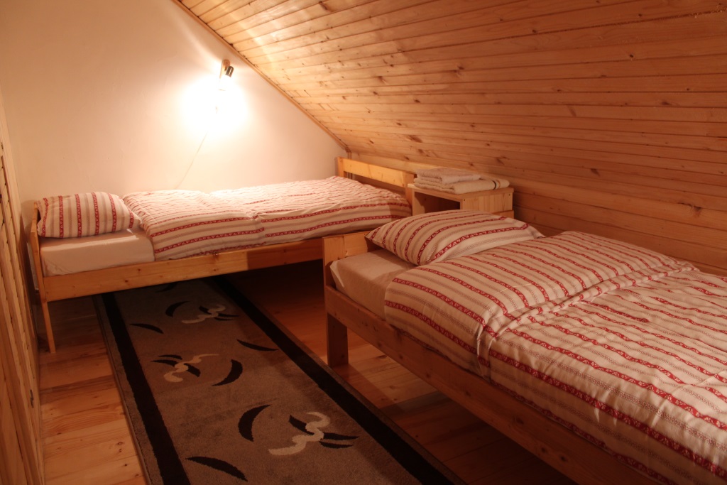 Vila je sačinjena od dve potpuno odvojene celine od kojih je svaka površine 90m2 (prizemlje, prvi sprat i potkrovlje) namenjen za 6-8 odraslih osoba, a raspolaže sa kompletno opremljenom kuhinjom, stolom za ručavanje, veš mašinom, kupatilom sa tuš kabinom, odvojenim toaletom, jednim bračnim krevetom, 2 odvojena kreveta, 2 odvojena kreveta u potkrovlju i komfornom ugaonom garniturom na razvlačenje (280/190).
